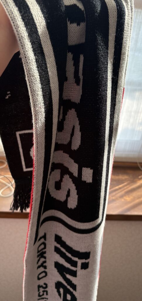 ノエルとリアムの顔入り福袋限定フットボールスカーフ。